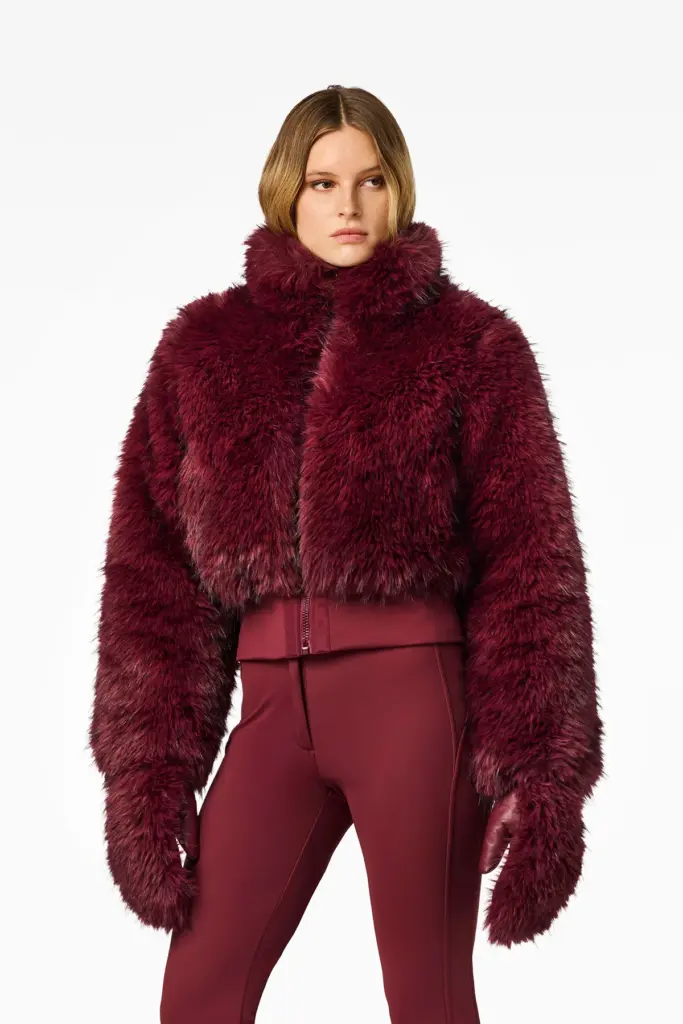 Temiz dokulu, minimal faux-fur tasarımlar dikkat çekiyor. Kısa faux-fur ceketler ve cozy kulaklık–buff setleri après-ski görünümüne yumuşak bir lüks etkisi katıyor.