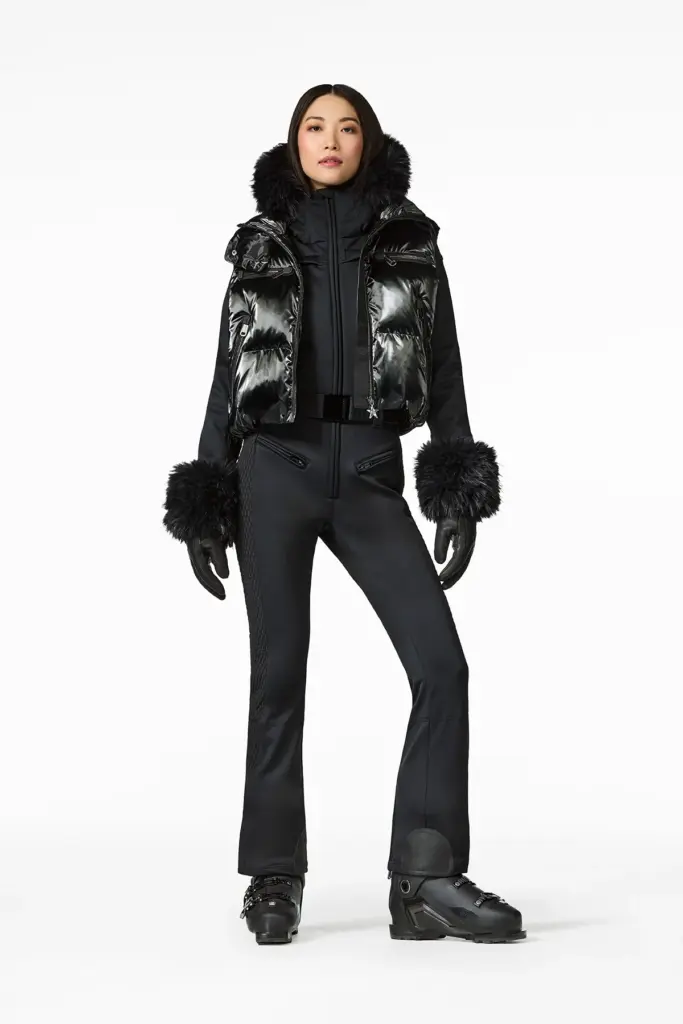 2026 sezonu parlak puffer ceketlerin yılı. Parlak yüzeyler hem piste hem après-ski alanlarına modern ve güçlü bir stil etkisi taşıyor.