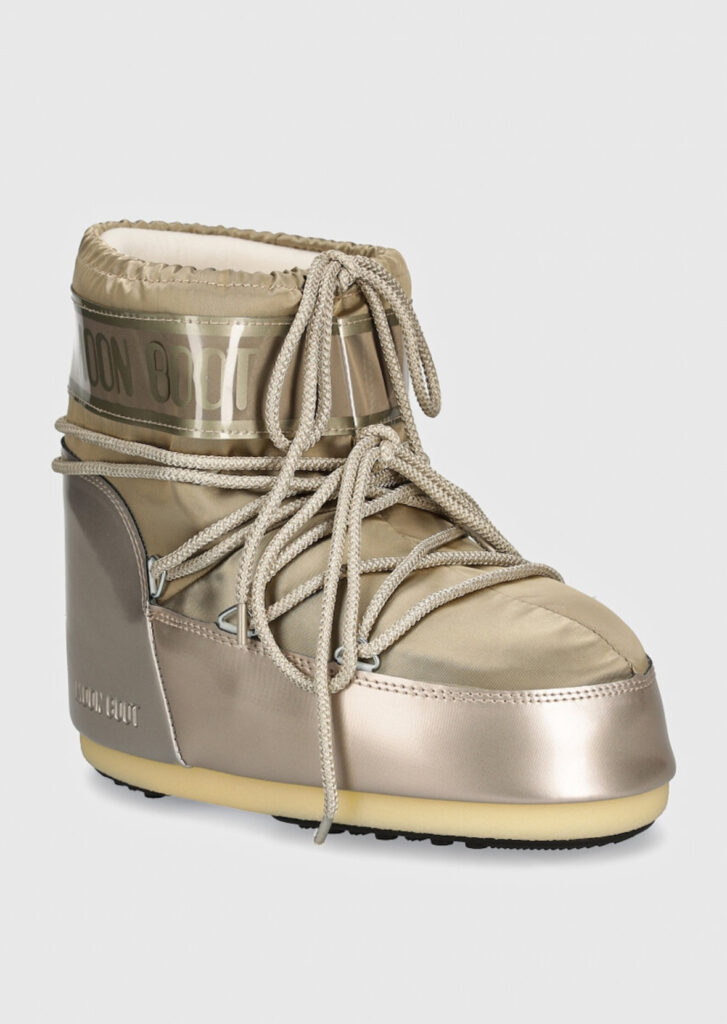 İkonik Moon Boot tasarımları 2026’da yeniden zirvede. Parlak metalikler, off-white ve stone tonlar ile ultra hacimli tabanlar bu estetiği güçlendiriyor.