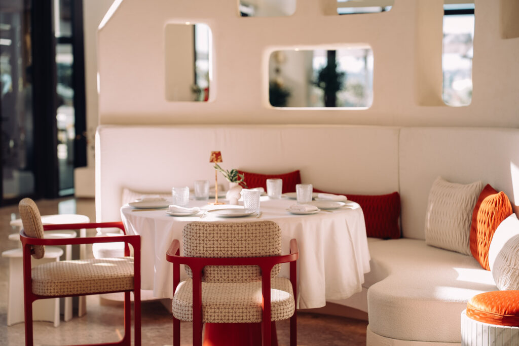 İç mekânda Mikonos’un beyaz taş evlerini, Santorini’nin gün batımlarını hatırlatan bir dekorasyon hâkim. Samimiyet ve ferahlık hissi, müzik ve yemekle birleşince ortaya sadece gözlerinize değil ruhunuza da işleyen bir deneyim çıkıyor.
