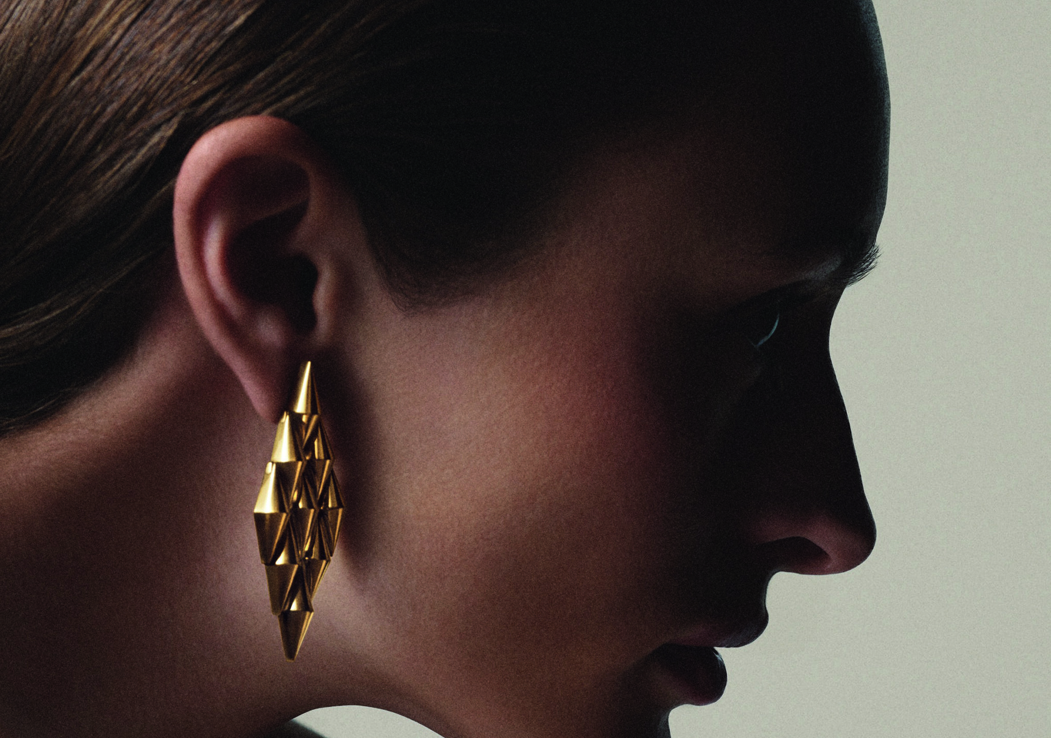 Küpelerde dikeylik öne çıkıyor. Sallantılı formlarda tasarlanan modüler ızgara yapıları, Bvlgari’nin sarı altınının sıcak tonlarını vurgularken zarif bir İtalyan karakteri taşıyor. Tek ve özgün ear-cuff versiyonu ise Vimini modülünün cesur ruhunu doğrudan yansıtıyor.