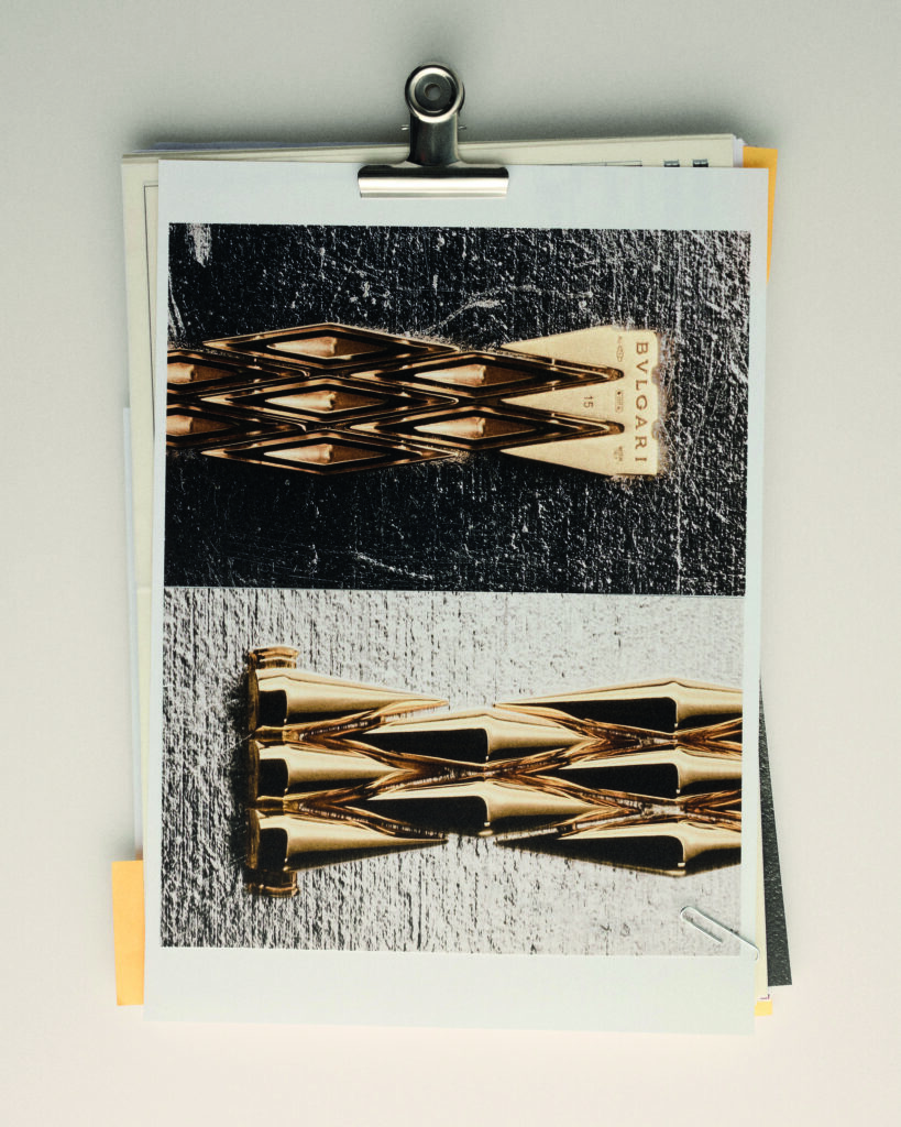 Bu tasarım dili, yalnızca Bvlgari stilinin ayırt edici unsurlarından biri hâline gelecek olan kromatik kontrastları ve modüler yapıyı somutlaştırmıyor; aynı zamanda Fransız platin geleneğinden ayrışarak Romalı Mücevher Evi’nin kimliğini tanımlayan sıcak altın kullanımını da ön plana çıkarıyor.